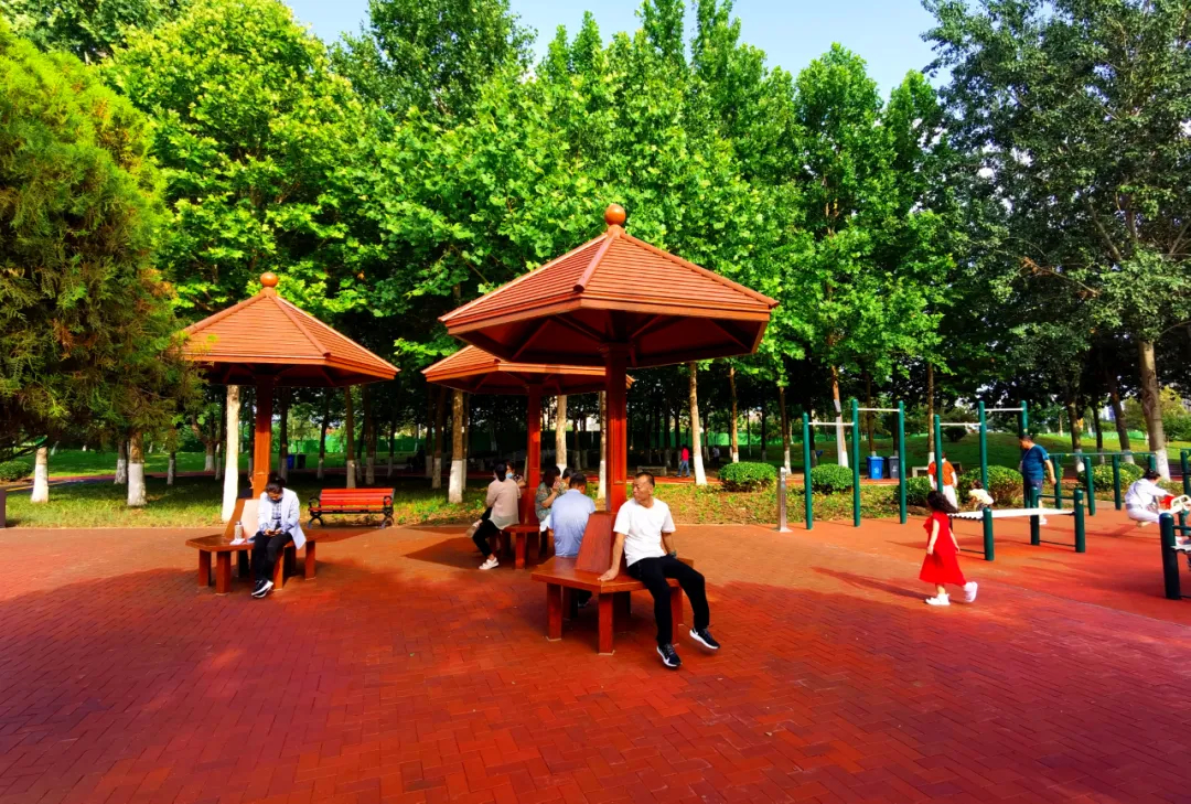 在公园整体景观效果的提升上,完成了红色透水砖路铺装1300平方米,维修及安装路沿石约3500米。铺装自然石路面及维修原有路面共960平方米,苗木栽植回填土方560立方米。着力推进公园建设,提升绿化效果。园路及新建健身场地周边栽植杜仲、雪松、白皮松、银杏、黄栌等乔灌木28个品种,共计472株。栽植月季、假龙头、金钱草、石竹、草皮卷等地被15个品种,共计40000余平方米。安装可供市民休憩的景观亭4处。