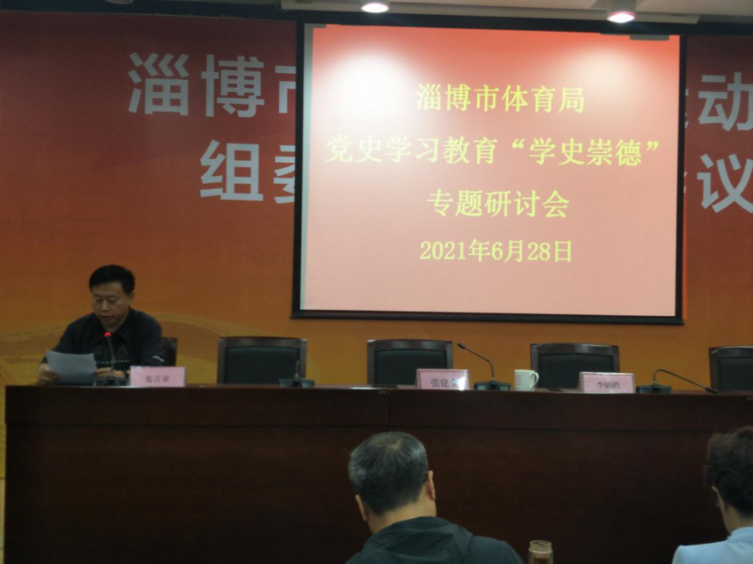 6月28日下午,市体育局在局一楼新闻发布厅组织开展7月份理论中心组扩大会议暨党史学习教育专题党课,会议由市体育局党组成员、副局长、三级调研员李炳胜主持,局领导班子成员,机关全体党员,直属单位副科级以上干部参加学习。