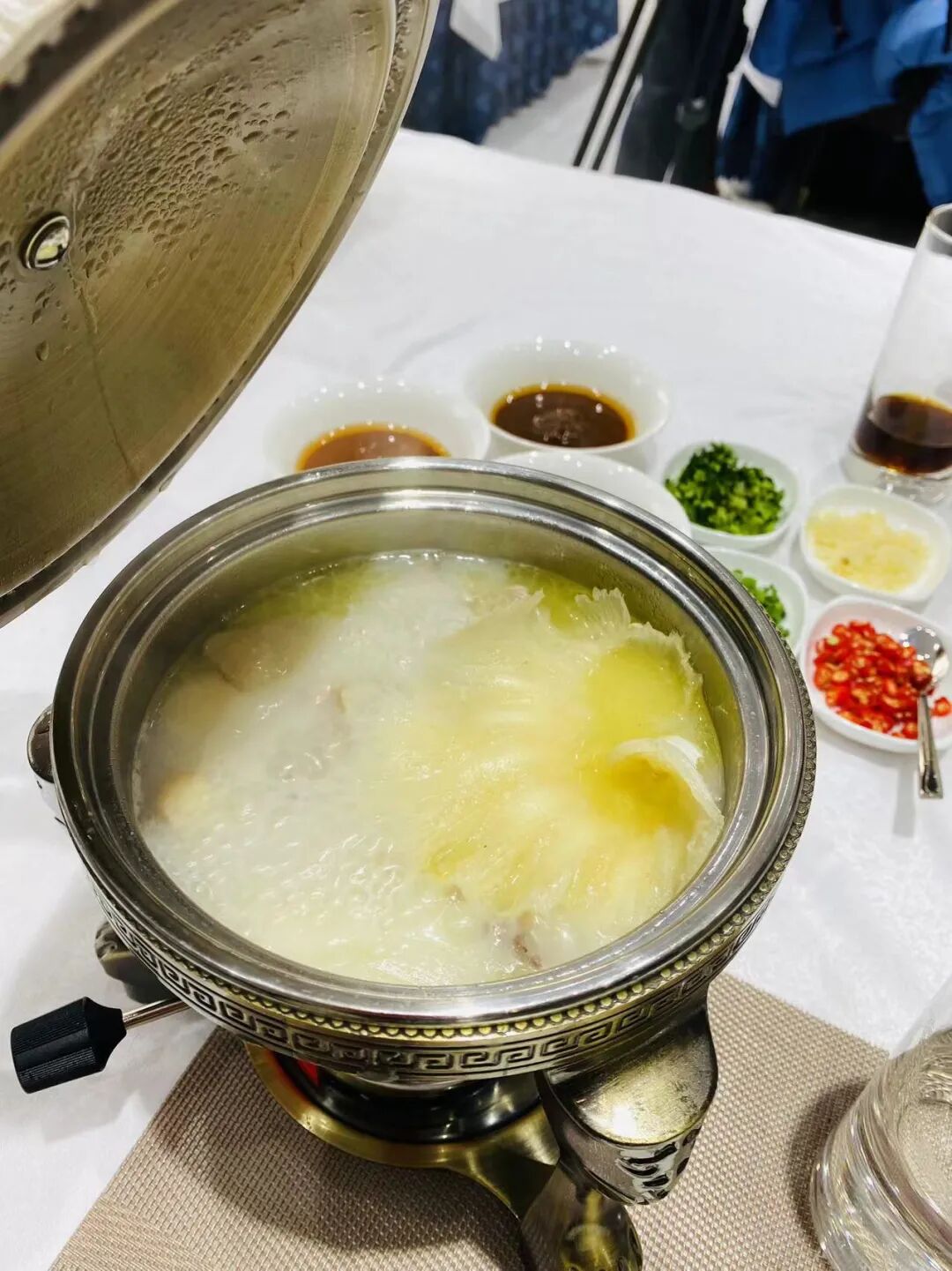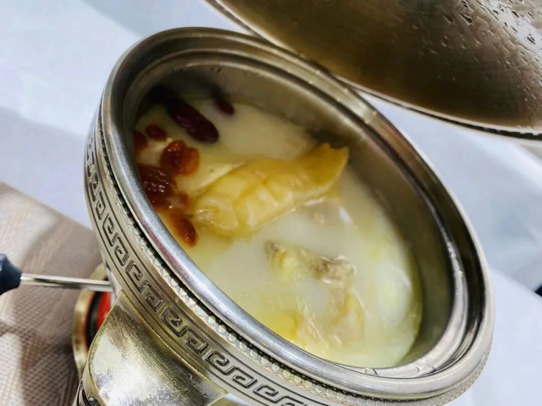 浓汤鸡煲翅锅底对原材料很注重,首选活的老鸡、龙骨、猪蹄、肘子等熬三到四个小时,要吊高汤,花胶鸡,专门从广东选的土鸡,浓汤的汤底是一样的,里面加了红枣、枸杞,这两种锅底都比较滋补,用到的食材都是精挑细选、真材实料。
