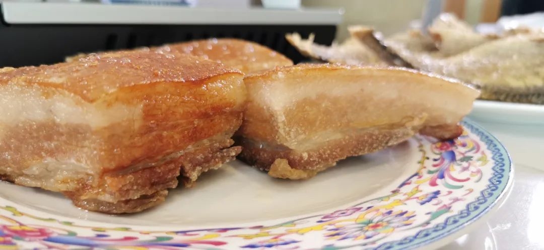把油撇出来汤才能够清爽,吊汤的时候放一点葱姜和花椒皮,用小火慢慢的煮开。炸虎皮肉一定要预先刷上一点酱油上色,还有刷一点甜面酱刷上之后一晾干。然后把鱼处理一下。油温达到160度可以炸鸡蛋,炸到金黄色。虎皮肉必须得把肉煮熟,而且肉皮上一定要用竹签插满小孔。