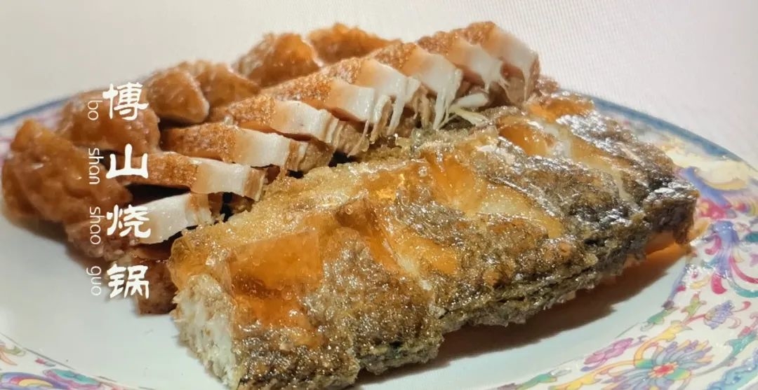 博山烧锅是博山菜当中一个技艺非常独特的菜品,同博山的酥锅、旱酥鱼这三道菜统称为博山三锅。烧锅在烹饪的技艺当中有一个逢烧必炸的技法 ,博山烧锅三种主要的食材有黄花鱼、带皮的五花肉、煮好的鸡蛋。