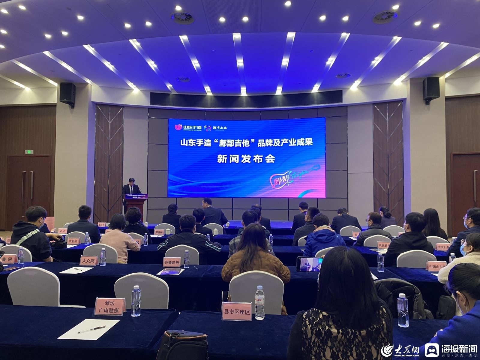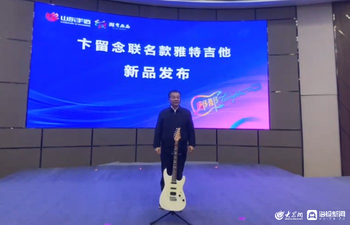来自“吉他小镇”的悦耳琴韵在泉城的手造“网红打卡地”奏响!11月4日上午,山东手造“鄌郚吉他”品牌及产业成果新闻发布会在山东手造展示体验中心召开。发布会特别邀请国家一级作曲家兼演奏家、东方歌舞团音乐总监及音乐指挥卞留念参加,卞老师在视频连线中,用他的联名款鄌郚吉他进行演奏,并对吉他给予了高度评价。