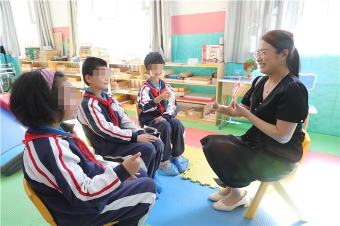 由于身体的缺陷,受特殊教育的孩子在自理方面面临着常人想象不到的困难,性格也大多敏感脆弱和反复无常,有时会对老师直接表现出不满和攻击性,有的年轻教师还被学生打击到“哭鼻子”。为了让残障儿童尽快提升交流沟通能力,杜红梅把手语化作跳动的音符,把唇形、口型的变化描绘成生动的图片,引导孩子多用手和眼睛去感知世界、表达自我,孩子们慢慢能听得进课、听得懂课,更理解了老师们的良苦用心。