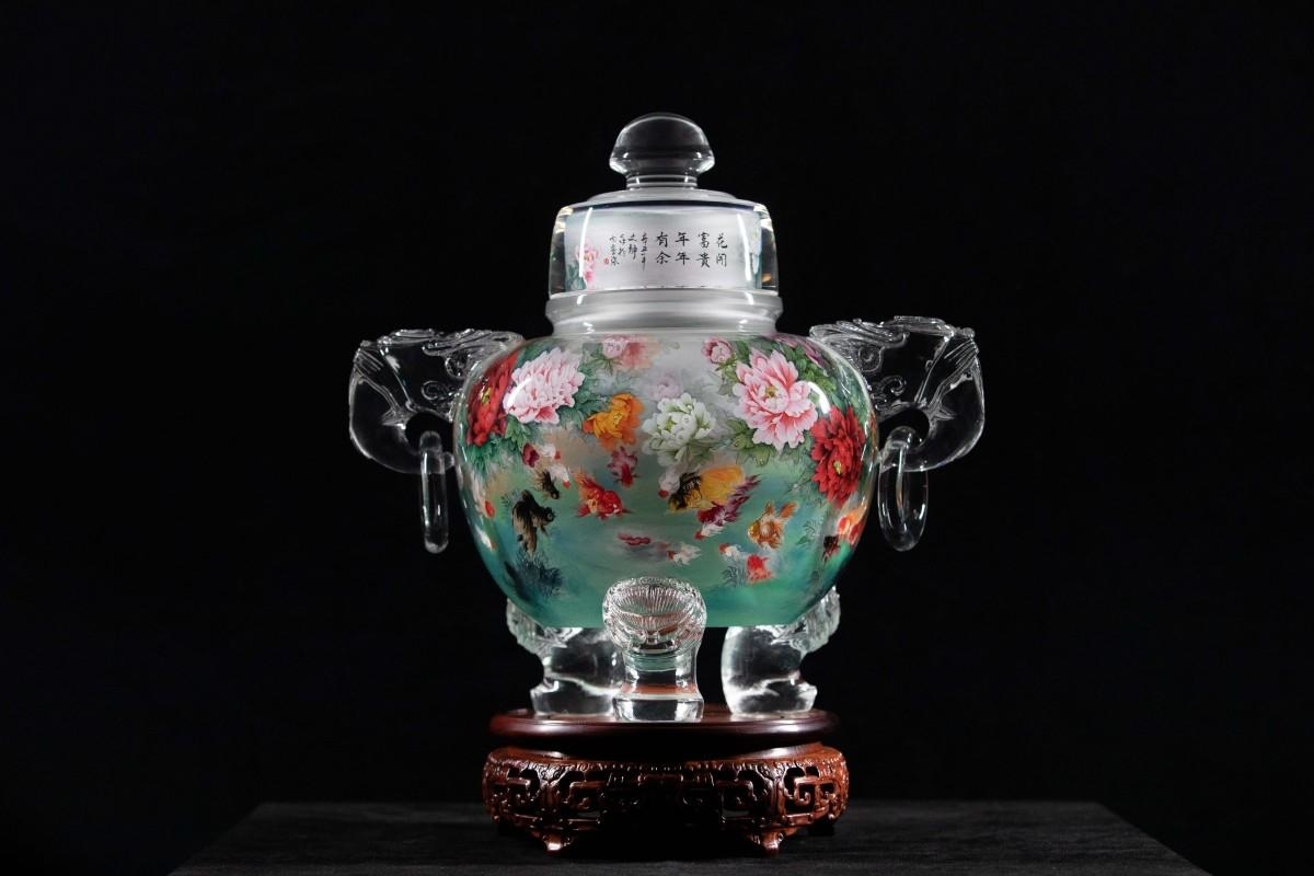 《花开富贵》构图饱满,用笔传神,色墨相衬映。画中牡丹竞相开放的美景在细腻的笔墨和亮丽的色彩下描绘出来,给人以极佳的视觉享受和美的体验。此藏品现馆藏于山东省淄博市博山区内画张博物馆。 来源:“学习强国”淄博市博山区通讯站