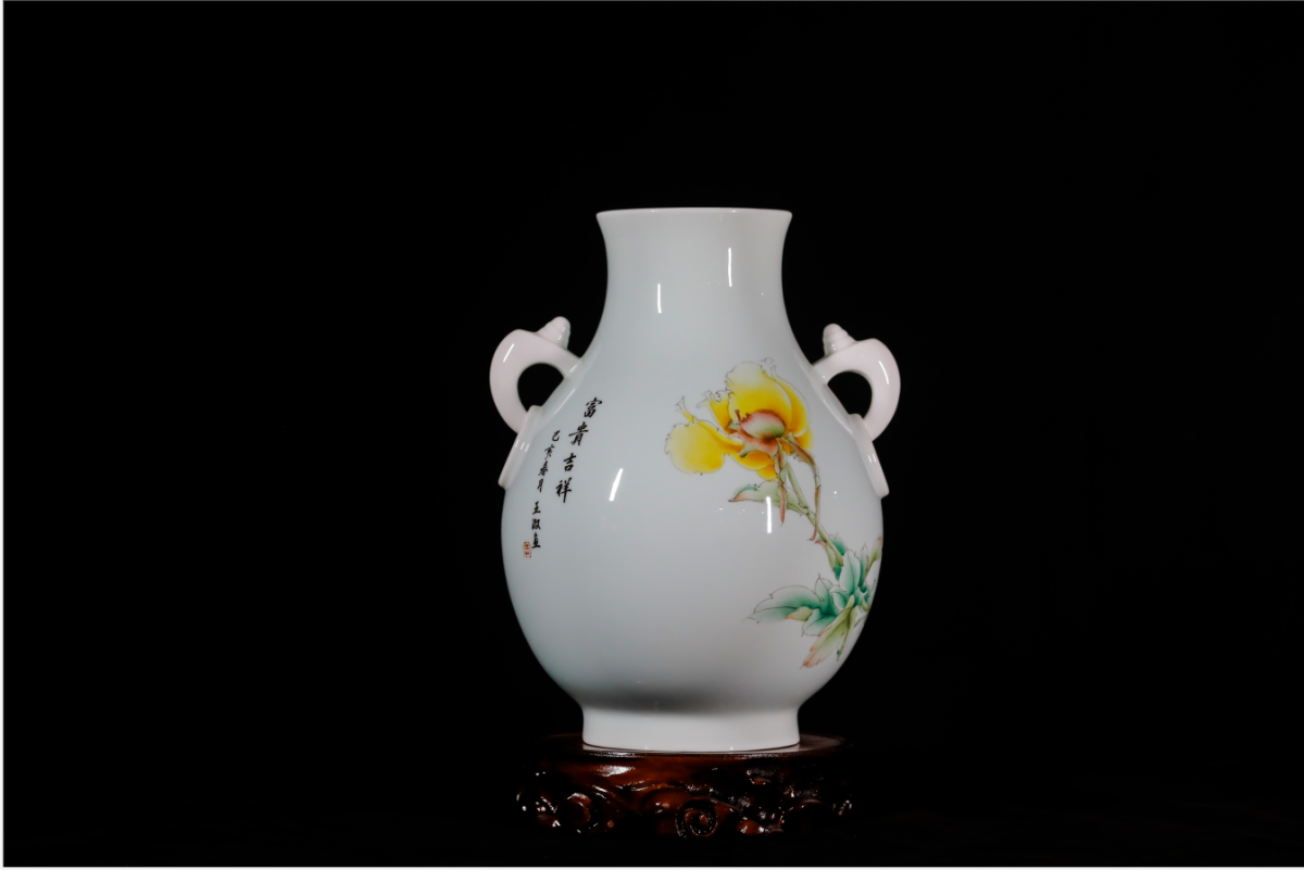 好客山东 好品山东︱淄博市博山区陶瓷琉璃艺术大师蜡像馆藏品——双耳花环瓶