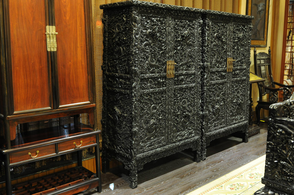 好客山东 好品山东︱淄博市福王红木博物馆藏品——紫光檀祥云雕龙大柜