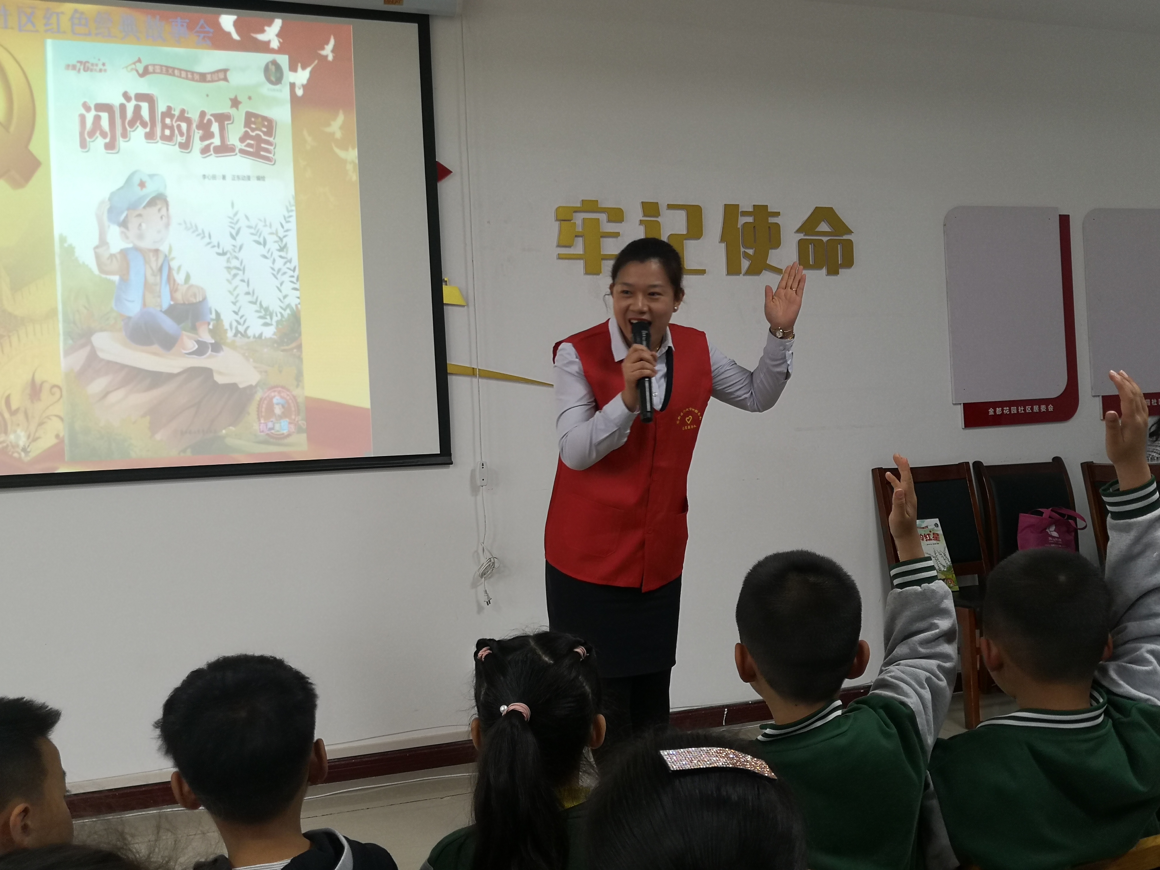 为加强社区未成年人思想道德建设,激发社区上下党史学习的热情,让儿童青少年从党史教育中汲取力量,传承红色精神,更好地助力社区儿童青少年健康成长。4月22日下午,山东淄博高新区行政审批服务局党史宣讲员走进双报道社区金都花园给社区居民、幼儿园的老师和孩子们讲述了红色经典故事《闪闪的红星》。