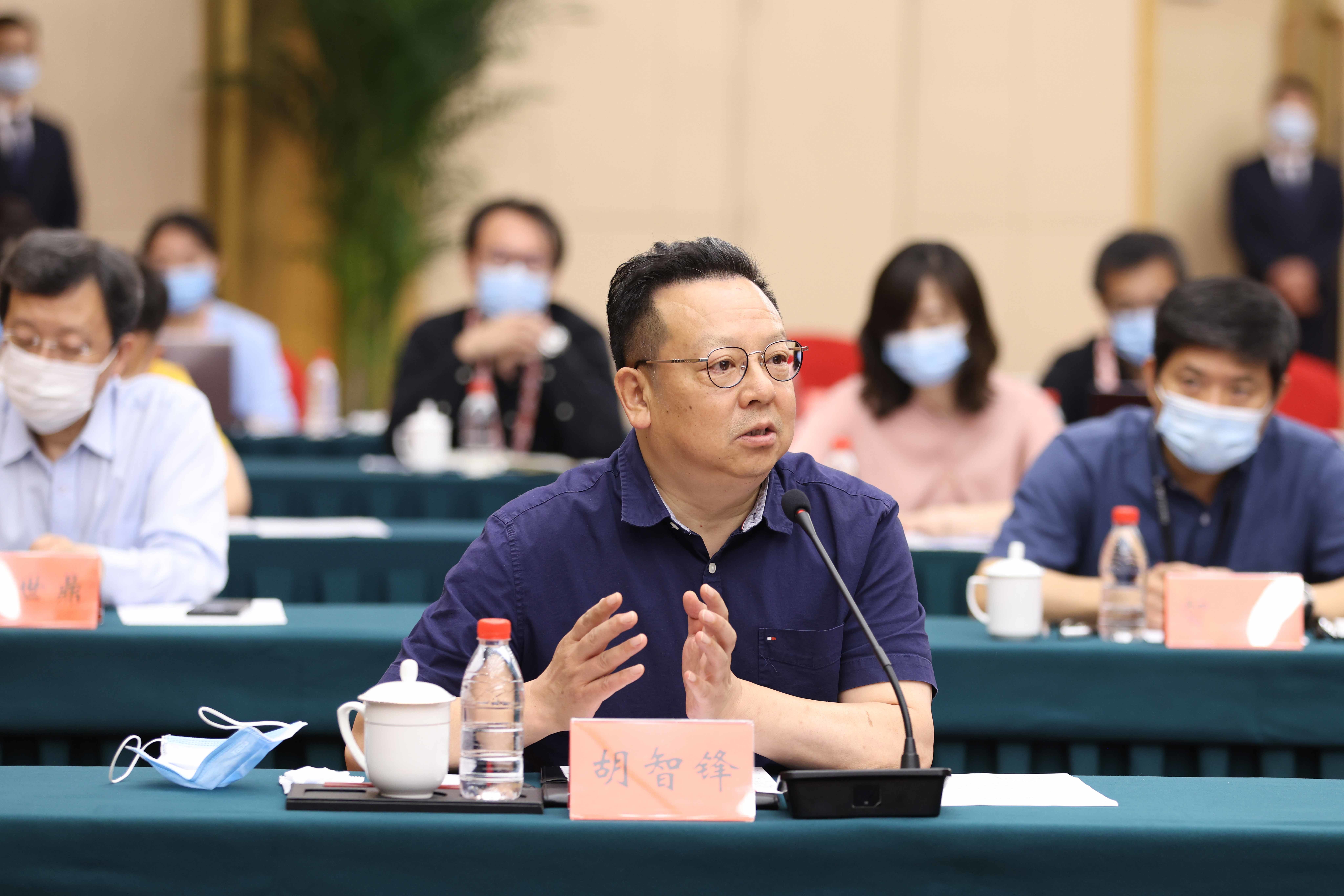 中央广播电视总台编务会议成员薛继军、王晓真,总台有关部门负责人,以及有关专家学者等参加了座谈会。(摄影:廖江衡)