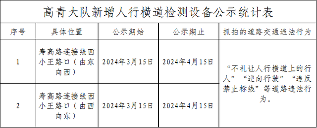 1处不礼让行人设备进行公示