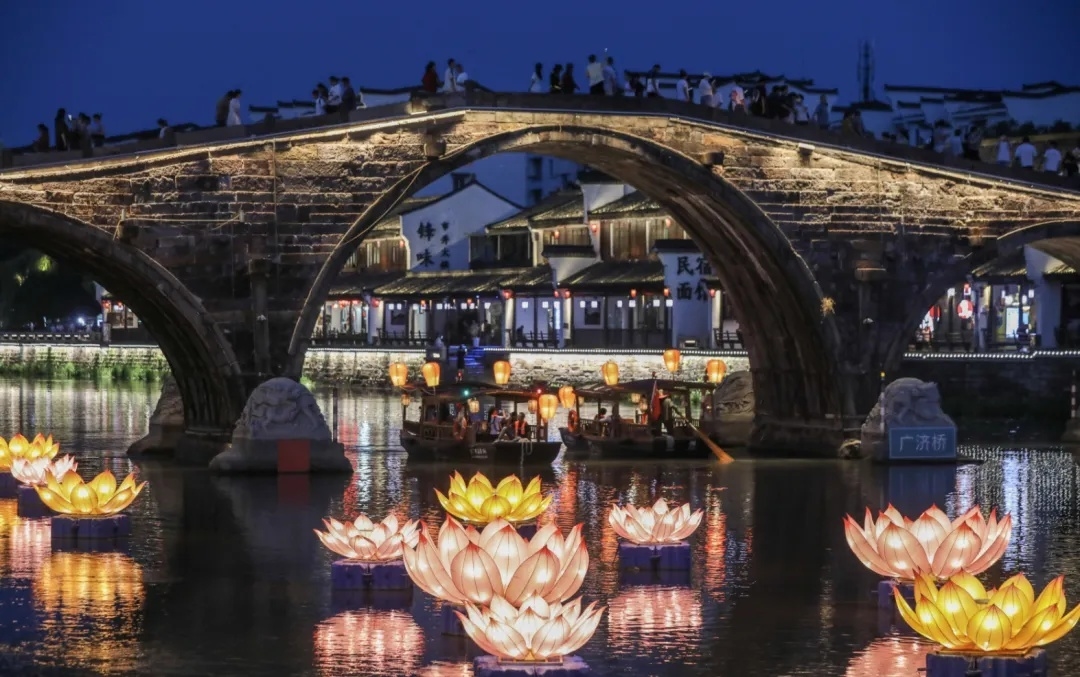10月2日,游客在塘栖古镇游览 图源:新华社