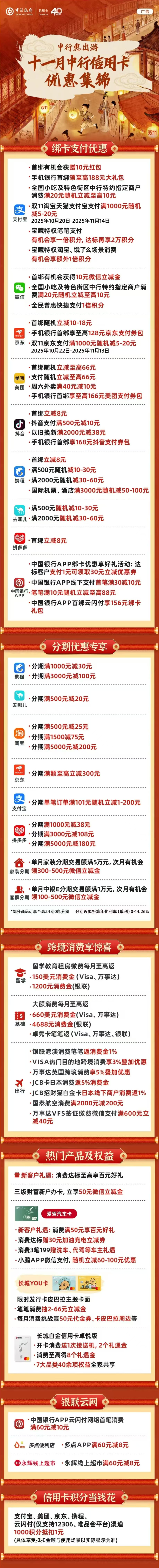 【信用卡福利】11月中行信用卡优惠集锦