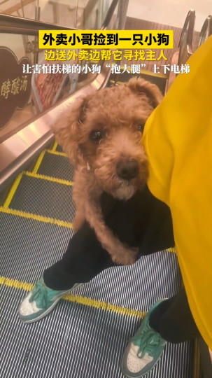 外卖小哥捡到一只小狗,边送外卖边帮它寻找主人