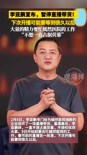 李亚鹏宣布,暂停直播带货!下次开播可能要等到很久以后