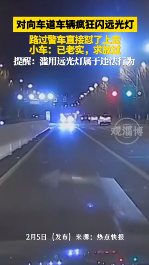 对向车道车辆疯狂闪远光灯,路过警车直接怼了上去