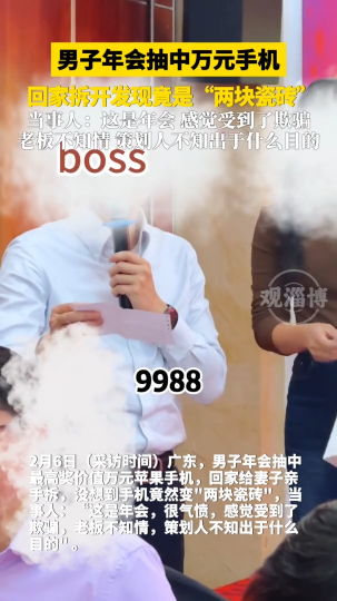 男子年会抽中万元手机,回家拆开发现竟是两块瓷砖
