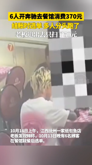 6人开奔驰去餐馆消费370元,结账时逃单,多人分头跑了