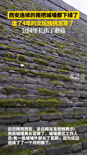 西安连续的雨把城墙都下绿了,盘了4年的文玩核桃发芽了