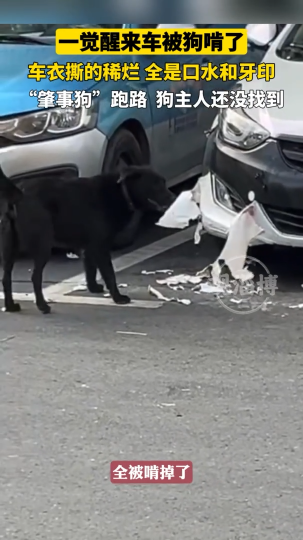 一觉醒来车被狗啃了,车衣撕得稀烂,全是口水和牙印