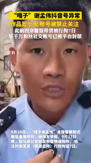 “嘎子”谢孟伟抖音号异常,作品显示无账号被禁止关注