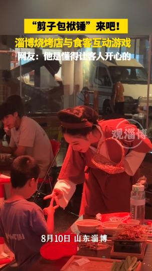 淄博烧烤店与食客互动游戏,“剪子包袱锤”来吧!