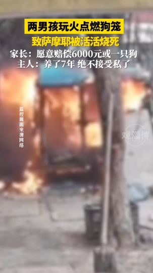 两男孩玩火点燃狗笼,致萨摩耶被活活烧死