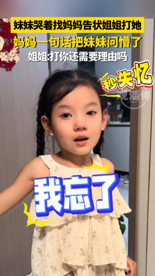 妹妹哭着找妈妈告状姐姐打她,妈妈一句话把妹妹问懵了
