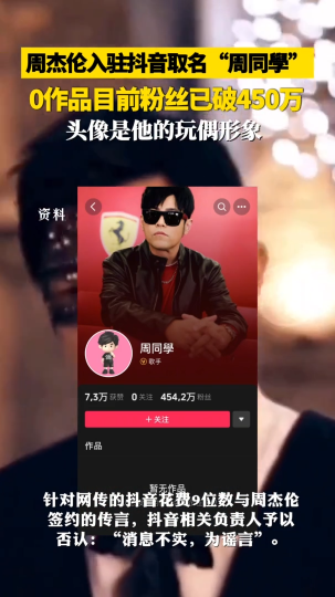 周杰伦入驻抖音取名“周同學”,0作品目前粉丝已突破450万