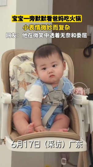 宝宝一旁默默看爸妈吃火锅,小表情微妙而复杂