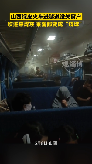 山西绿皮火车进隧道没关窗户,吹进来煤灰,乘客都变成“煤球”