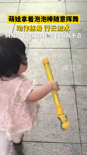 萌娃拿着泡泡棒随意挥舞,动作丝滑,行云流水