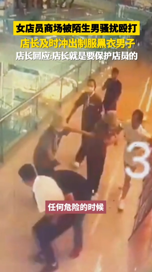 女店员商场被陌生男骚扰殴打,店长及时冲出制服黑衣男子