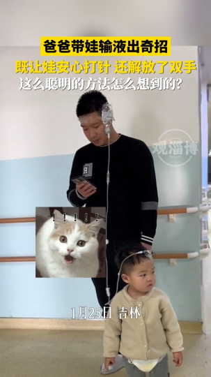 爸爸带娃输液出奇招,既让娃安心打针,还解决了双手