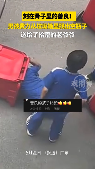 刻在骨子里的善良!男孩费力从垃圾箱里找出空瓶子