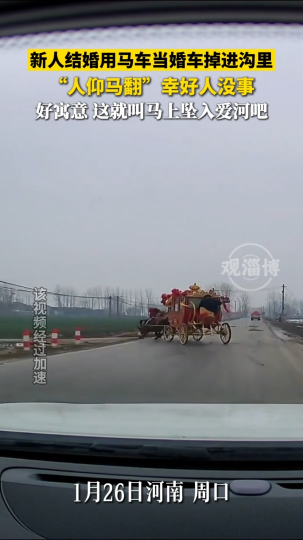 新人结婚用马车当婚车掉进沟里,好寓意!这就叫马上坠入爱河吧