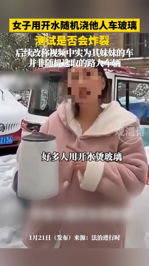 女子用开水随机浇他人车玻璃,测试是否会炸裂