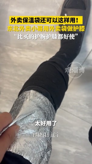 外卖保温袋还可以这样用!东北外卖小哥用外卖袋做护膝