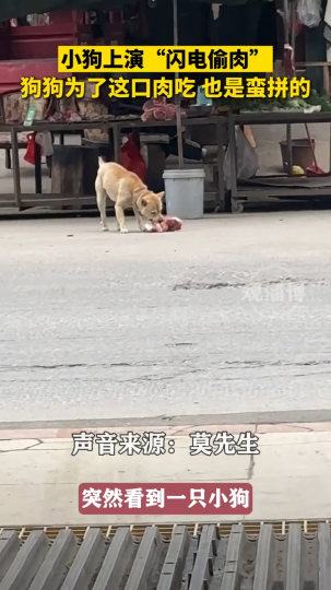 小狗上演“闪电偷肉”,狗狗为了这口肉吃,也是蛮拼的
