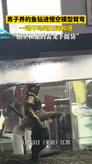 男子养的鱼钻进悟空模型臂弯,一动不动毫无违和感