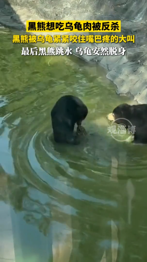 黑熊想吃乌龟肉被反杀,最后黑熊跳水,乌龟安然脱身