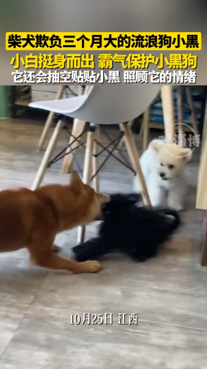 柴犬欺负三个月大的流浪狗小黑,小白挺身而出!
