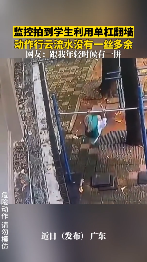 监控拍到学生利用单杠翻墙,动作行云流水,没有一丝多余