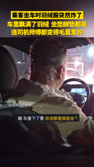 乘客坐车时羽绒服突然炸了,车里飘满了羽绒,坐垫脚垫都是