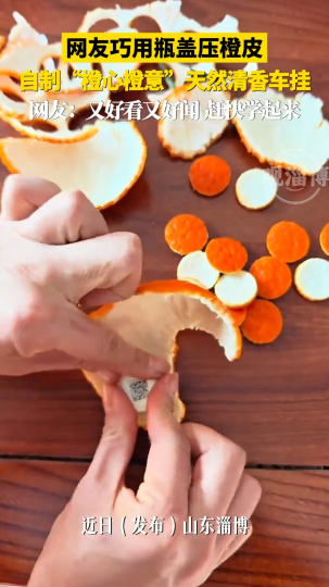 网友巧用瓶盖压橙皮,自制“橙心橙意”天然清香车挂