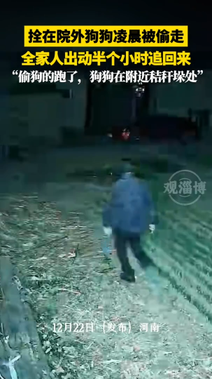 拴在院外狗狗凌晨被偷走,全家人出动半小时追回来