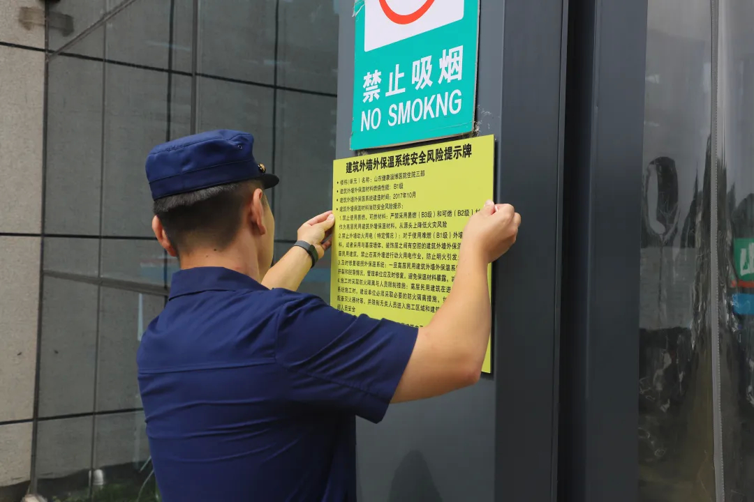此项工作,不仅让建筑保温系统的安全状况“亮明身份",也为后续的维护、监管提供了明确依据。下一步,淄川区消防救援大队将逐步实现所有在建、已建设有外墙外保温系统的高层住宅建筑“一楼一牌”全覆盖,持续深化标识管理成效,切实筑牢建筑外墙保温材料火灾防控防线,保障群众生命财产安全。
