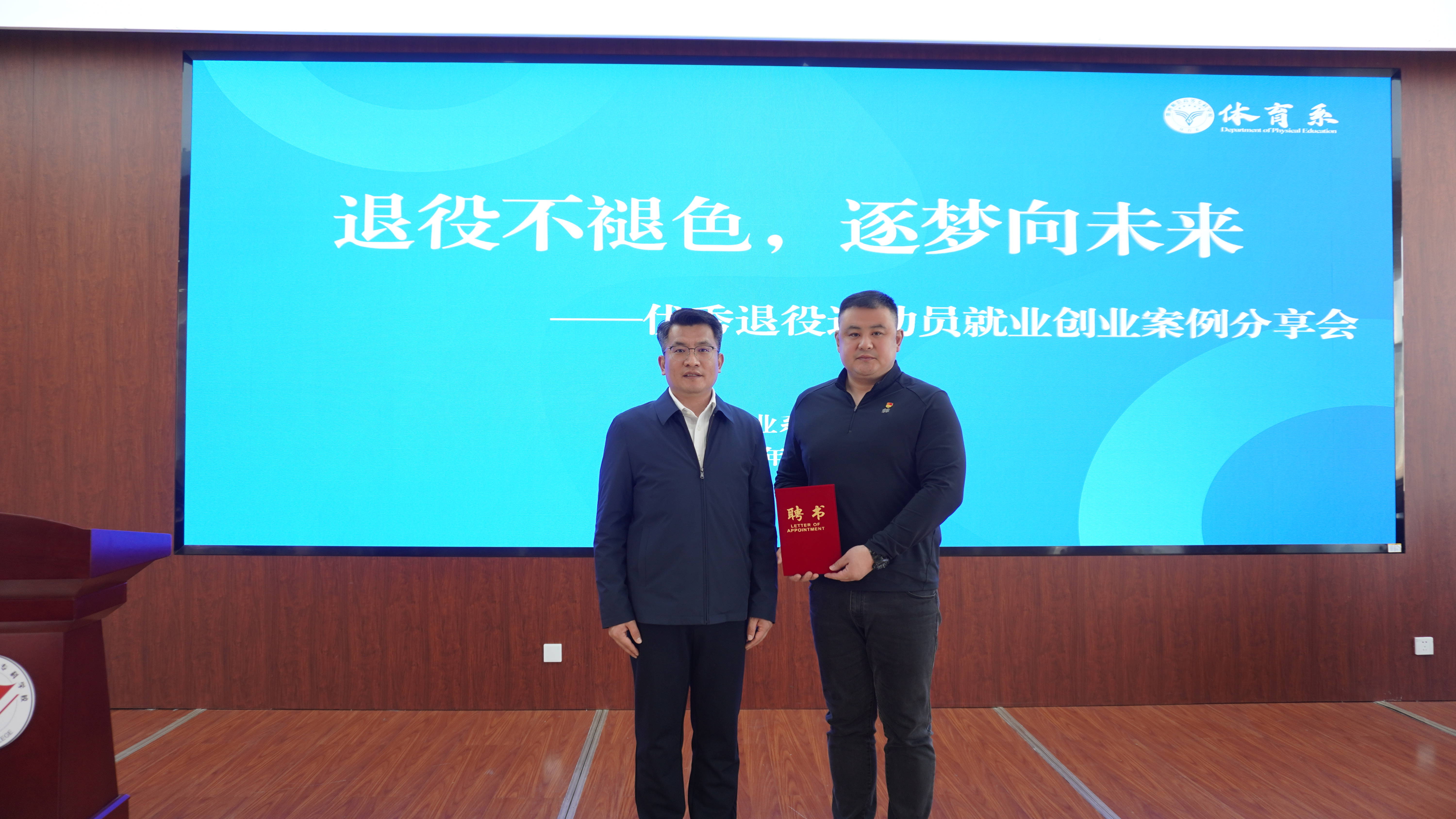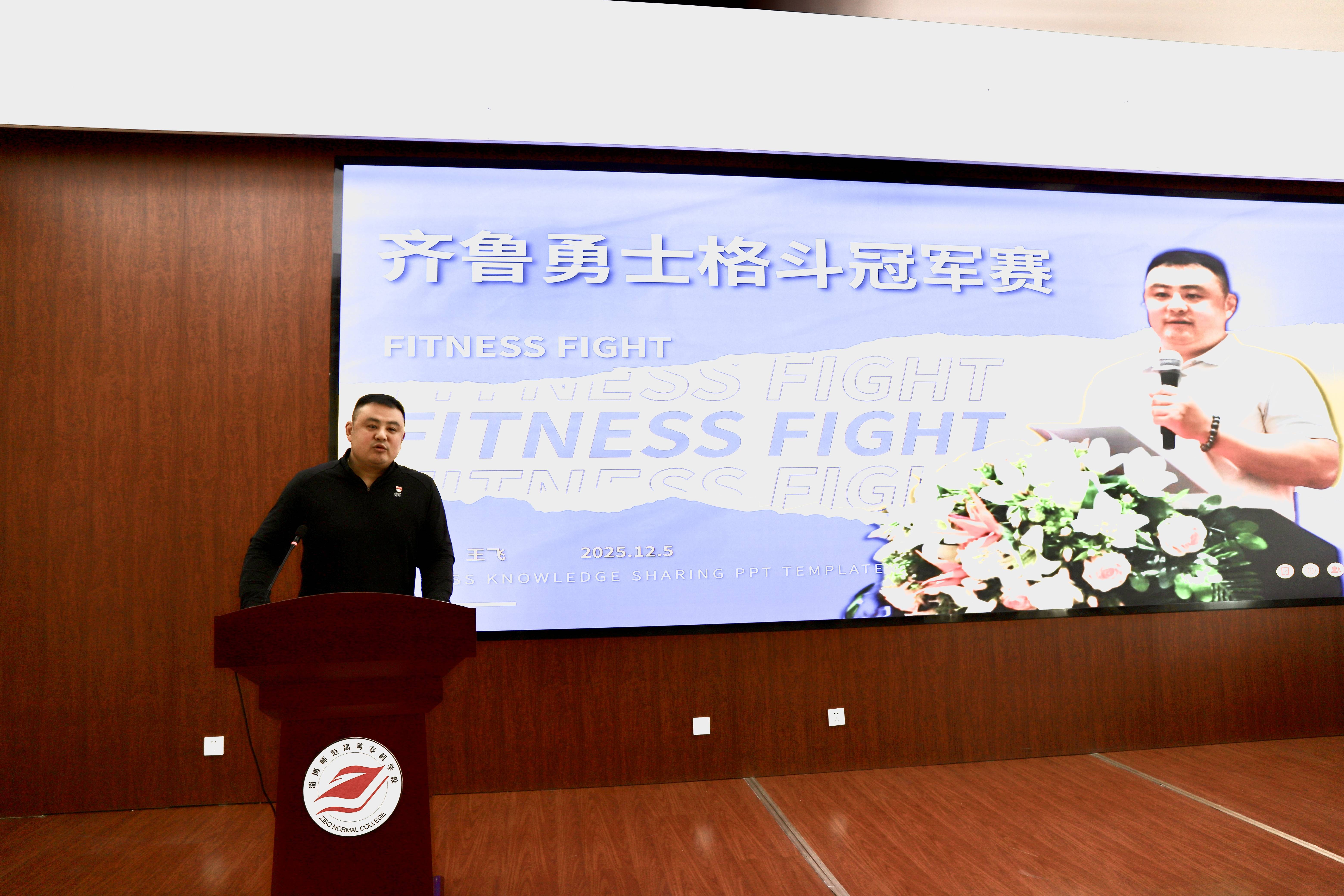 2026年1月21日,淄博市格斗运动协会会长王飞受邀走进淄博师范高等专科学校,为体育系2023级体育教育专业学生带来带来一场主题分享。作为山东省散打队退役运动员,他以“从赛场到创业赛道的坚守与突破”为核心,结合协会发展实践,为即将踏入社会的同学们送上满满干货。分享会现场,淄博师专体育系党总支书记兼创新创业系负责人宗涛为会长王飞颁发“淄博师范高等专科学校大学生创新创业导师”聘书,正式邀请其为该校学子的创新创业之路保驾护航。