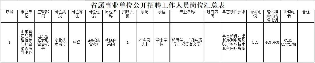 山东4家省属事业单位招聘工作人员