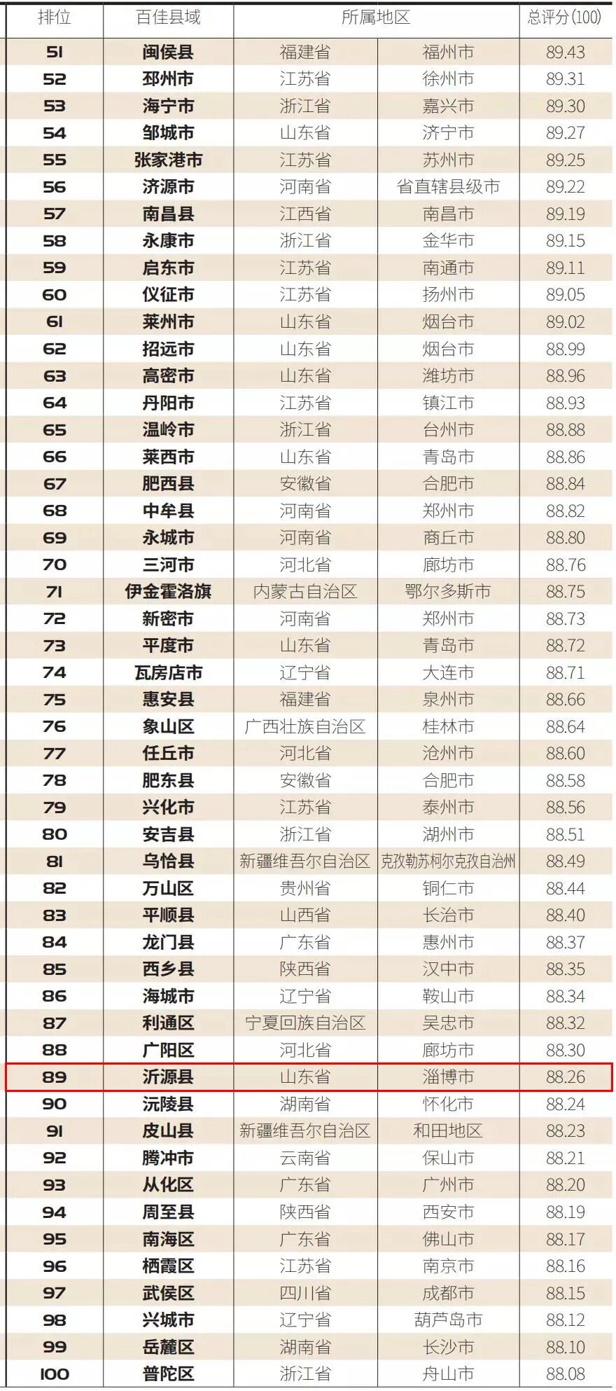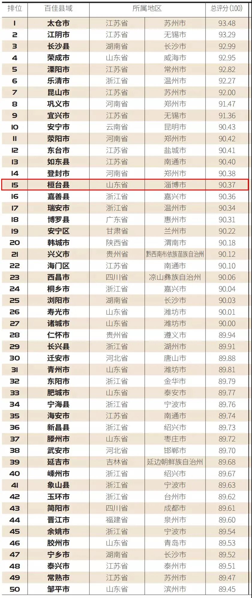 淄博桓台县、沂源县上榜。