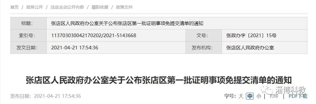 关于公布张店区第一批证明事项