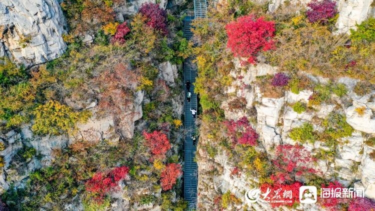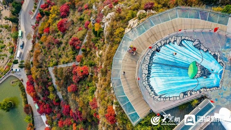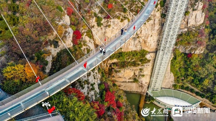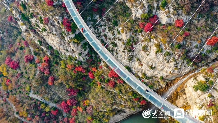 当秋色遇见玻璃栈道 淄博潭溪山宛如调色盘